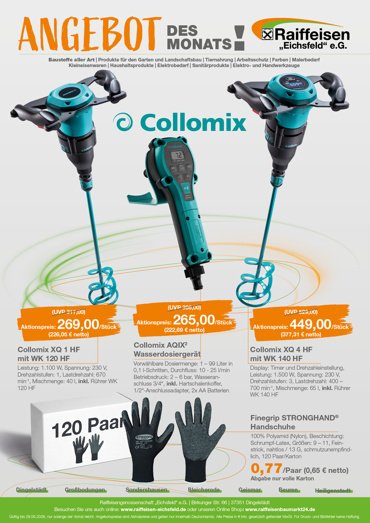 Unser Sortiment umfasst Baustoffe, Produkte für den Garten und Landschaftsbau,Tiernahrung, Arbeitsschutz, Farben, Malerbedarf, Kleineisenwaren, Haushaltsprodukte, Elektrobedarf, Sanitärprodukte, Elektro- sowie Handwerkzeuge.